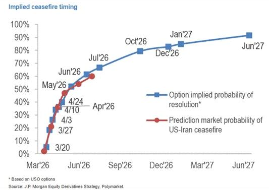 期权和预测市场当前暗示,两个月内达成停火的概率仅约为50%。