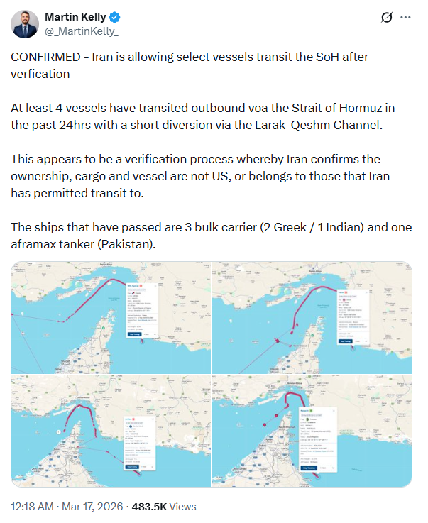 与此同时,EOS风险集团咨询主管称,过去24小时内,至少有4艘船只经拉拉克-格什姆海峡短暂绕行后,从霍尔木兹海峡出港。